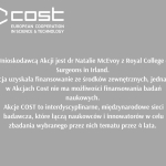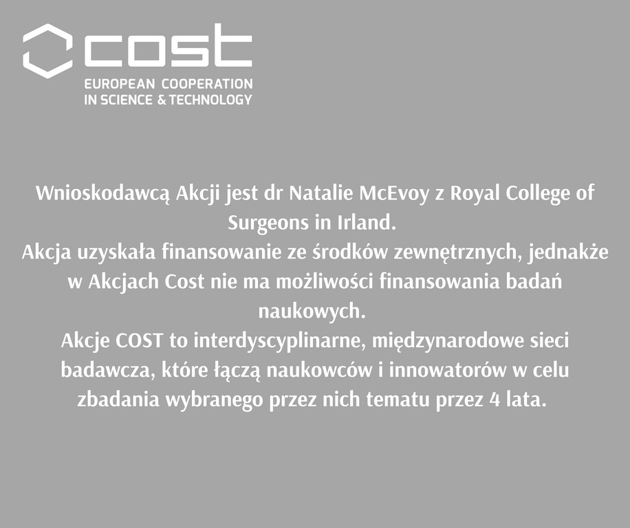 Wnioskodawcą jest Pani Dr Natalie McEvoy z Royal College of Surgeons in Irland. Akcja uzyskała finansowanie ze środków zewnętrznych, jednakże w Akcjach Cost nie ma możliwości finansowania badań naukowych. Akcje COST to interdyscyplinarne, międzynarodowe sieci badawcza, które łączą naukowców i innowatorów w celu zbadania wybranego przez nich tematu przez 4 lata.